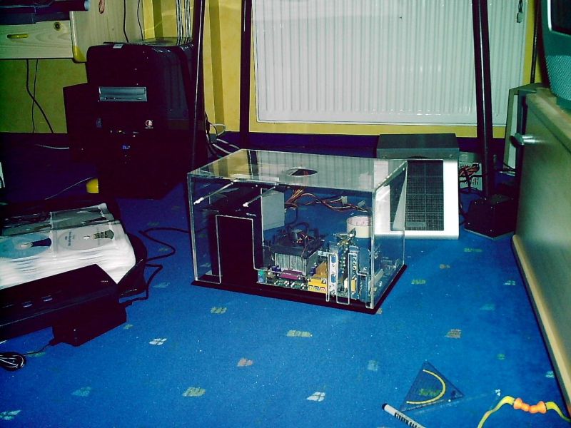 Durch einen Zufall ist mir eine recht gut erhaltene (ich sag mal Vitrine) aus Plexi in die Hände gefallen. Maße sind ca. 24 x 24 x 40cm. Die Box besteht aus der oberen ca. 6mm dicken, durchsichtigen Haube und einer ca. 13mm dicken Bodenplatte aus schwarzem Plexi. Der erfahrene Modder weiß natürlcih gleich was mit so einem Teil angestellt wird zwinkernd