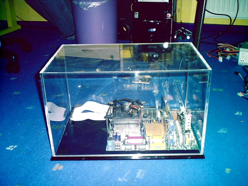 Durch einen Zufall ist mir eine recht gut erhaltene (ich sag mal Vitrine) aus Plexi in die Hände gefallen. Maße sind ca. 24 x 24 x 40cm. Die Box besteht aus der oberen ca. 6mm dicken, durchsichtigen Haube und einer ca. 13mm dicken Bodenplatte aus schwarzem Plexi. Der erfahrene Modder weiß natürlcih gleich was mit so einem Teil angestellt wird zwinkernd