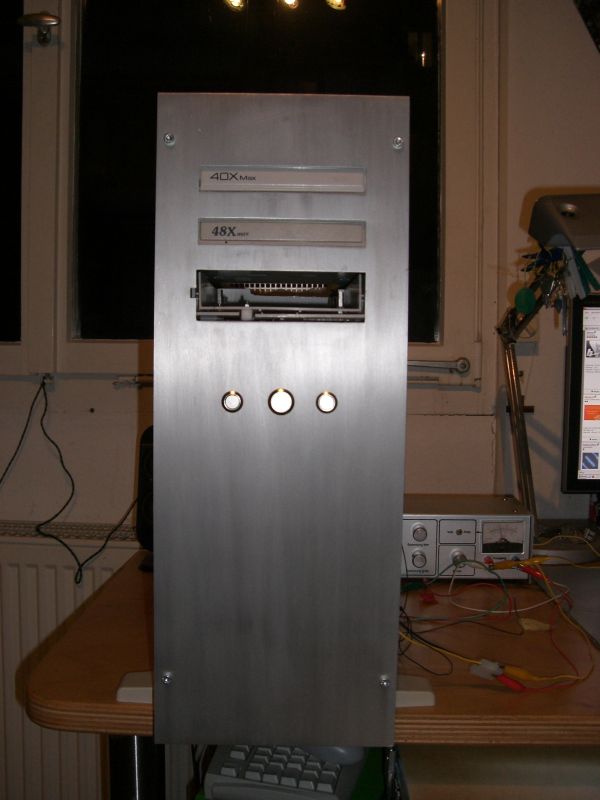 so gester nacht noch mal in die werkstadt geschlichen un die löcher dür die taster in die front gebohrt.