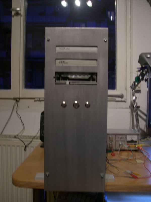 so gester nacht noch mal in die werkstadt geschlichen un die löcher dür die taster in die front gebohrt.
