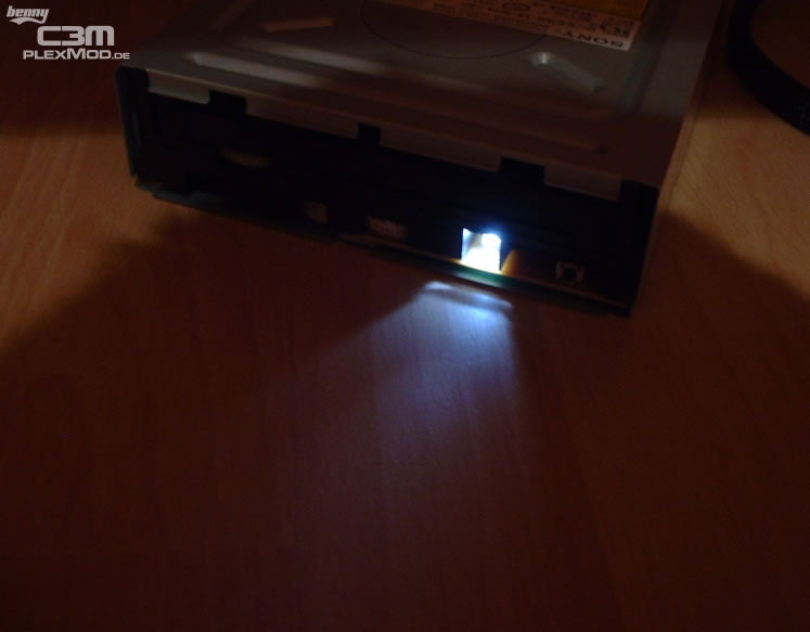 Und beim DVD Brenner habe ich dann noch die grüne LED rausgeschmissen und durch eine weiße ersetzt (ja sieht leicht bläulich aus, ist aber weiß ;) ).
