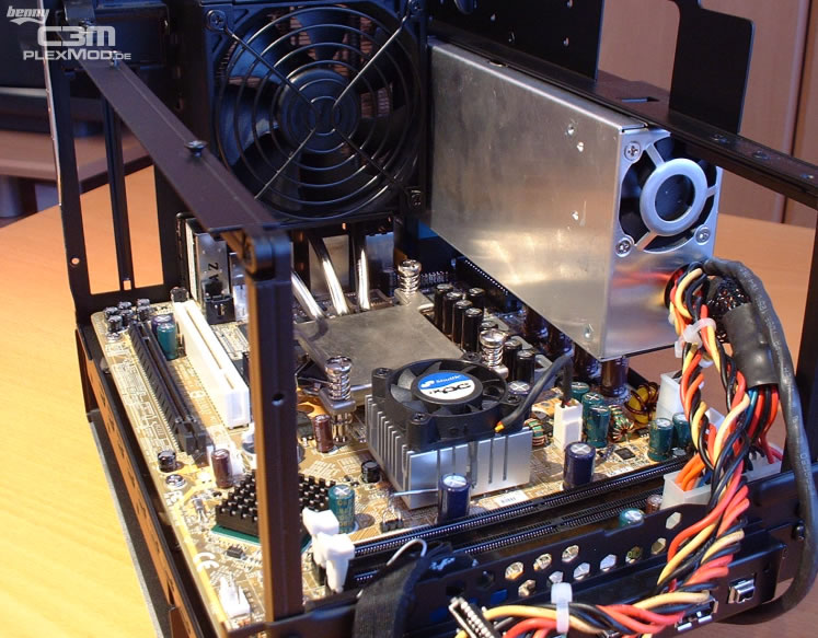 ja die werden so da bleiben, deswegen hab ich geguckt, das die auch beide schwarz sind, dann fallen die später - wenn man durch das Lochblech im Deckel schaut - hoffentlich nicht so sehr auf (hab ich beim C3 ja ähnlich gemacht), nur mußten da neben dem IDE Kabel noch das Sata Kabel mit runter und die Stromversorgung habe ich da unterhalb verteilt..