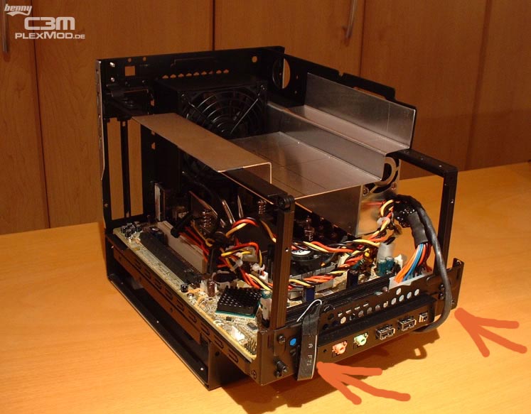 ja die werden so da bleiben, deswegen hab ich geguckt, das die auch beide schwarz sind, dann fallen die später - wenn man durch das Lochblech im Deckel schaut - hoffentlich nicht so sehr auf (hab ich beim C3 ja ähnlich gemacht), nur mußten da neben dem IDE Kabel noch das Sata Kabel mit runter und die Stromversorgung habe ich da unterhalb verteilt..