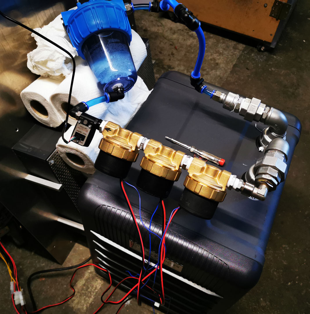 • Aktuelles Problem ist das der aktuelle gekaufte Wasserkühlungsflowmeter sich irgendwann nicht mehr dreht wenn genügend Luft sich darin sammelt. Daher habe ich einen Flowmeter mit Luftpott konstruiert. Inkl. G1/4" Gewinde um da ein KFE Hahn zur Entlüftung einzudrehen. Damit sollte das Problem fortan gelöst sein. Fürs einbauen habe ich in nächster Zeit keine Zeit. Das Update an der Cnc folgt dann vermutlich im April. Da möchte ich auch eine neue Absaugung integrieren.
