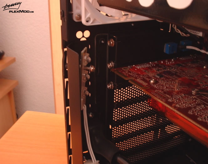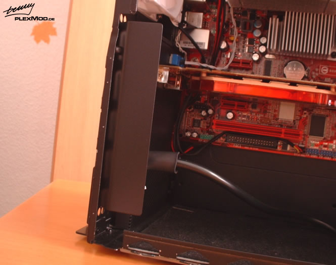 Das Alublech ist nämlich meine Halterung für eine der beiden Led Leisten und wurde dann im hinteren Bereich vom Case angebracht. ![]()