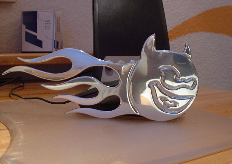 • Ich find den so poliert wirklich edel... auf jeden fall besser als vorher, auch wenn ich mich dougi spontan anschließen würde... mit ner kleinen Lücke zwischen Devil und Flammen wärs sicher auch ganz geil...