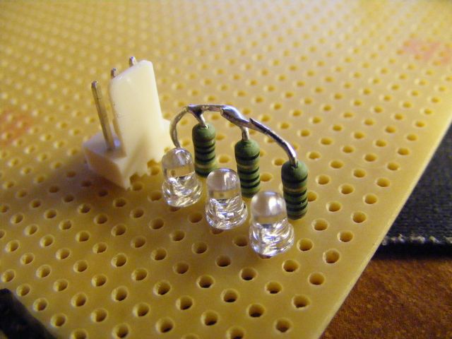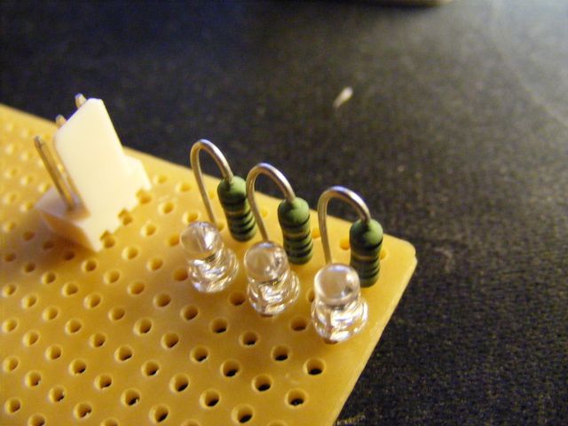 • und löten würd ich das mit ne streifen plattine sowie oben aufgezeichnet und dann zwischen den kontakten der widerstände unterbrechen... z.B. mitm bohrer dort vorsichtig den streifen durchbohren, oder gleich richtig mit nem leiterbahn unterbrecher