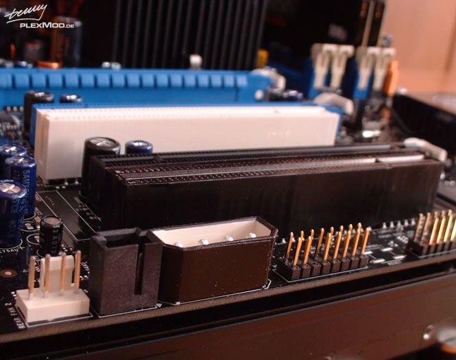Da sollte man nun erkennen können, das die durch den Glanz vom Edding nicht so schön aussehen wie der PCIe Slot, der aus schwarzem Plastik besteht.