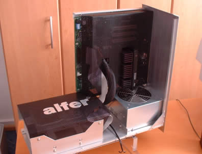 so hier mal n bild von der angefangenen mainboard abdeckung (bislang nur aus alu-lochblech).. wird noch ausgerichtet