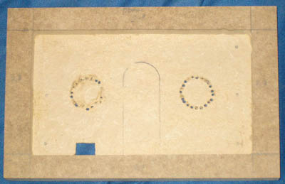 In der Mitte wird der Platz für den tft ausgefräst in das MDF werden rechts und links in die Seite mittig je eine Einschraubmutter eingesetzt. Dann werden zwei Flügelmuttern auf zwei Stücken Gewindestange geschweißt. Diese halten dann den drehbaren Teil mit dem Monitor. In den Fuß kommt eine 6polige mini-DIN-buchse (monitor) , zwei Chinchbuchsen (Video- und Audioeingang) und einen Niedervoltbuchse (Stromversorgung).