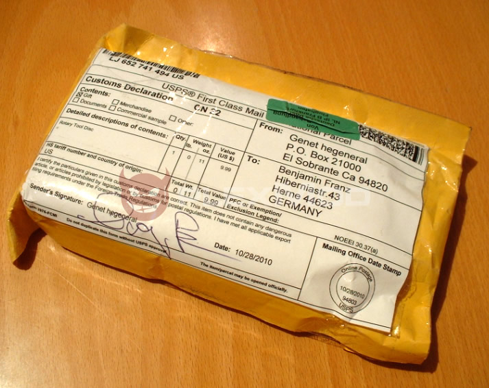 Am 12.11.2010 erreichte mich schließlich mit der normalen deutschen Post (Briefpost) meine Sendung aus den USA.