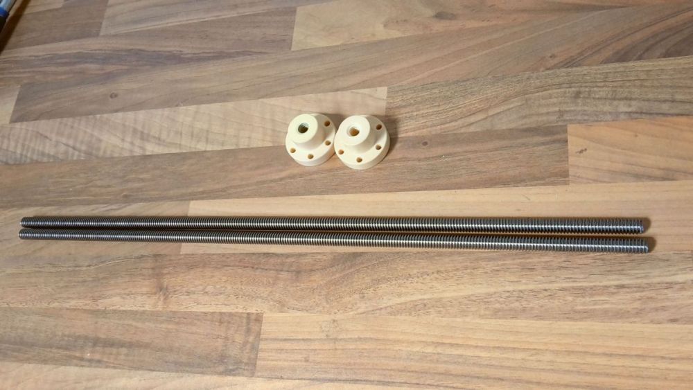 Die Trapezmuttern laufen recht leicht auf den Trapezgewinde mit gewissem Spiel. Das wird für mich aber denk ich nicht weiter schlimm werden.