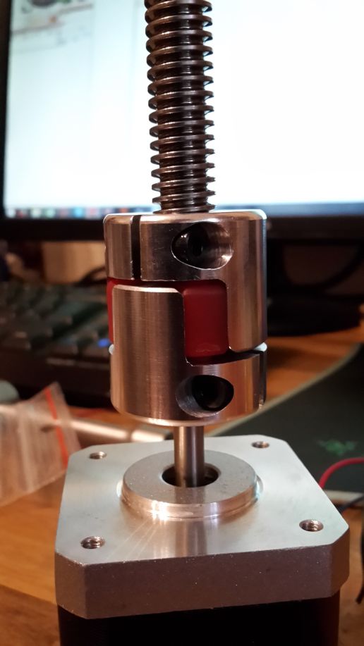 Hab die Kupplung mal provisorisch zwischen Motor und TR10x2 Gewinde geschraubt um zusehen wie es so aussieht und ob es auch hält.