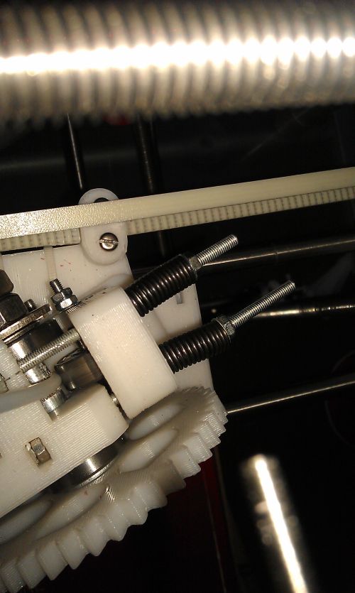 Sitzt das Zahnrad welches auf der Welle des Schrittmotors sitzt auch richtig fest? Bei mir hat die kleine Madenschraube auf der Welle