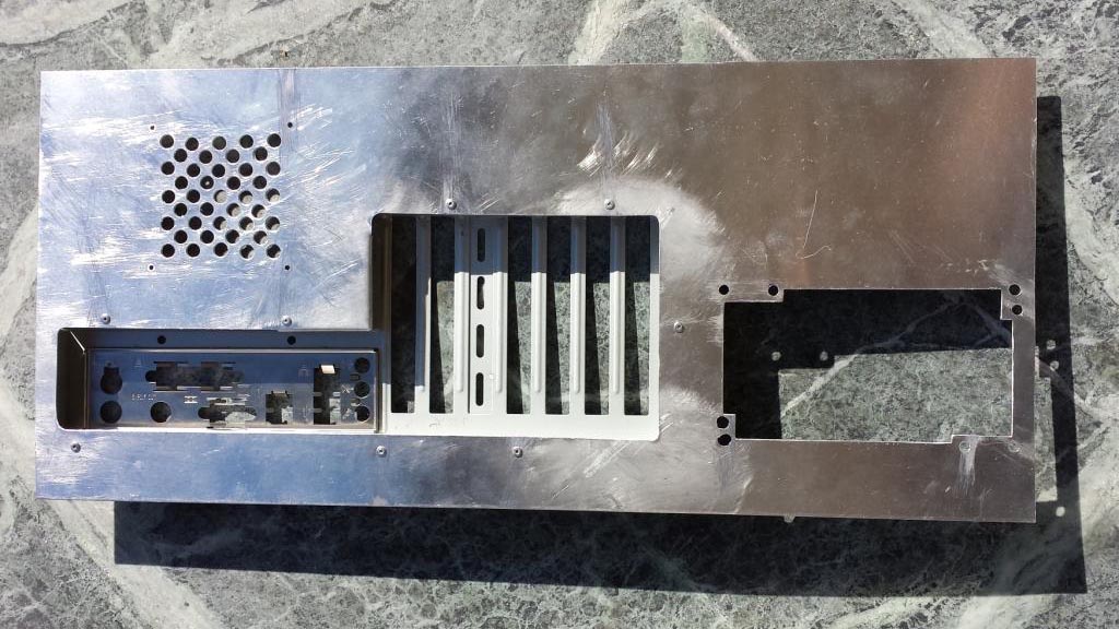 Die Konstruktion des Gerüsts ist für das volle ATX-Mainboard aber sehr einfach und kompakt gehalten. Zum verbinden benutze ich Alu-Nieten, weil diese nicht allzu weit rausschauen.