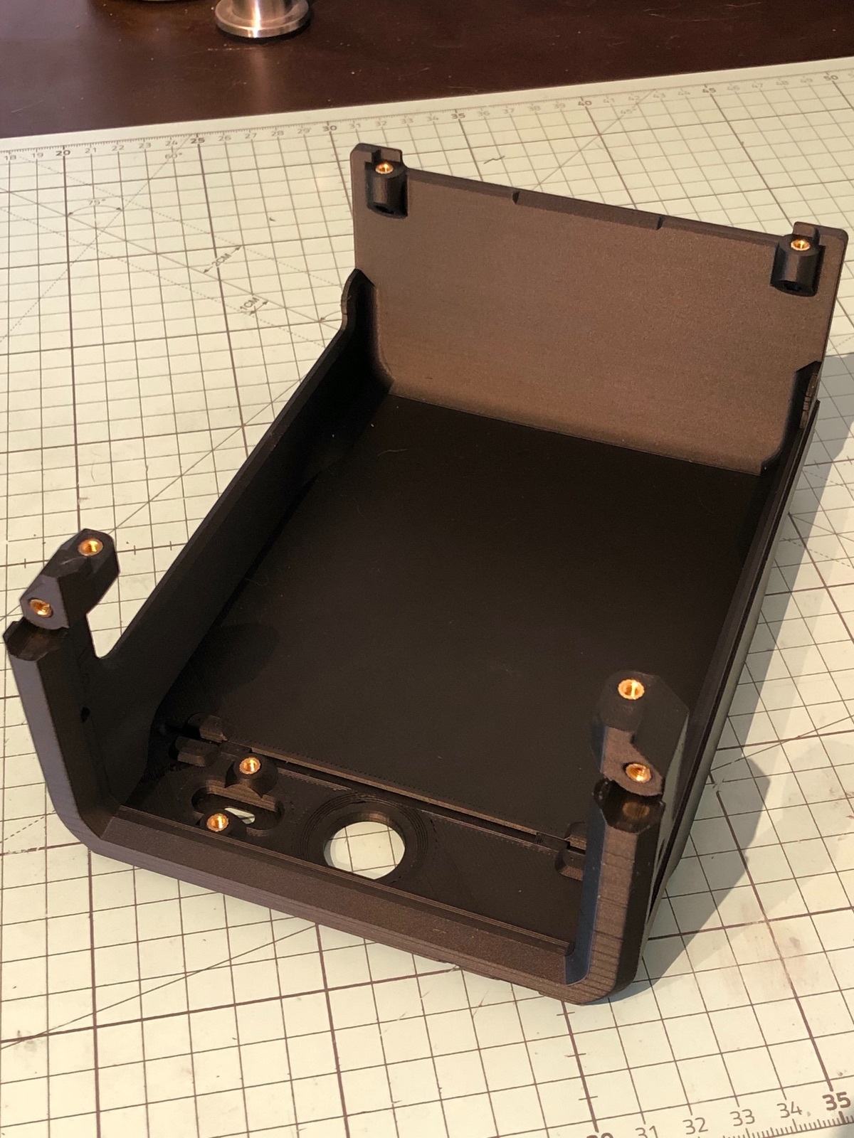 Hier gut zu sehen auch wieder die Gewindeeinsätze aus Messing. Im 3D Bild das graue Teil dient zur Befestigung der USB-C Buchse. Dabei habe ich leider einen Gedankenfehler gemacht... Es gab keine Möglichkeit das Kabel durch das Loch in dem Halter zu bekommen... Also ![]()