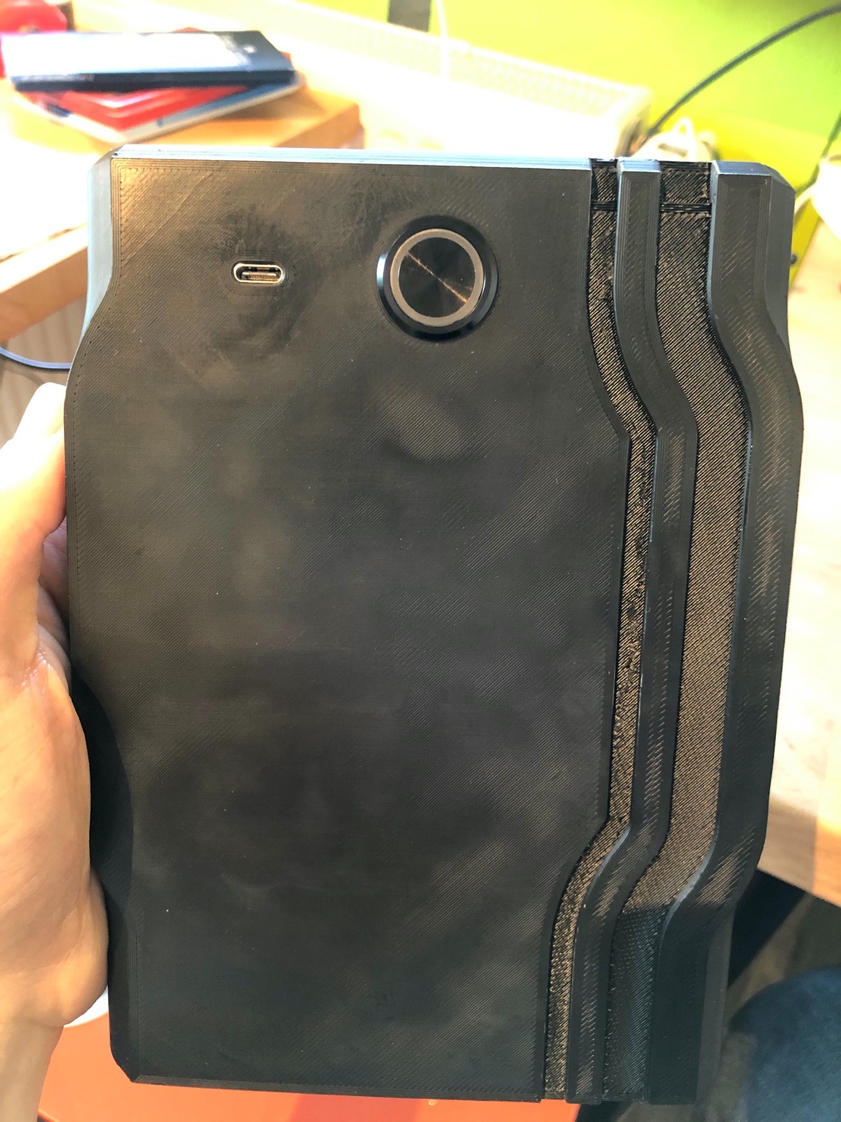 Die weiteren fehlenden Teile waren dann also noch? Richtig, eigentlich "nurnoch" oben das Panel... Das ganze war leider nicht so einfach. Besonders da es eine Kante haben sollte um das Seitenpanel aufzunehmen. Deshalb musste das ganze "Überkopf" gedruckt werden um es Druckbar zu machen. Dadurch fehlt eine Befestigung für das Holzpanel. Das Holzpanel wird oben mit Mangelten gehalten. Es werden kleine 6x3mm Magneten an das Holz geklebt, an dem Gegenüberliegenden Teil werden schrauben ins Plastik geschraubt an denen sich die Magnete festhalten sollen. Das erschien mir als einfachste Lösung.
