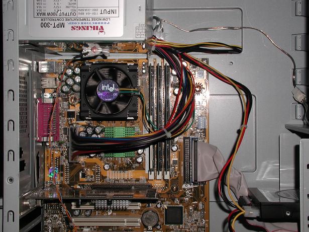 heute habe ich das plexi in das seitenteil geklebt und viele unnötige kabel hinterm mainbord versteckt, mal zur probe