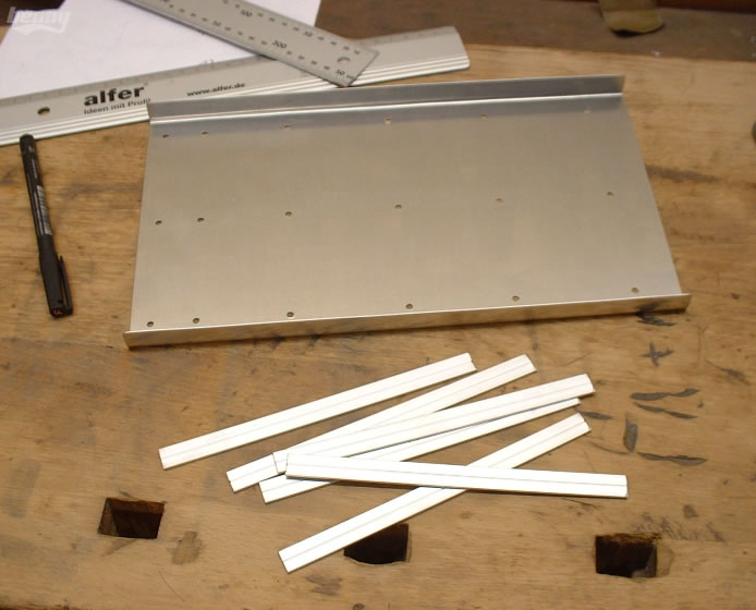 dann noch ein paar Bohrungen gemacht und zusätzlich das Alublech mit Flachstangen (mit Gewinden drin) verstärkt..