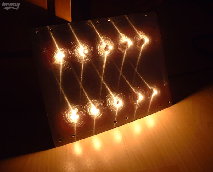 habe mich heute mal um die Beleuchtung des benny Schriftzugs gekümmert.. und zwar wird hinter das Alu mit dem Logo mattiertes Plexi kommen (evtl. noch Lochblech dazwischen aber wohl eher nicht) und dann kommt ein Alublech, wo ich kleine Glühbirnchen durchgesteckt habe (wird mit etwas Abstand zum Plexi montiert).. und sorgt dann für ein warmes, angenehmes Licht im Innenraum ![]()