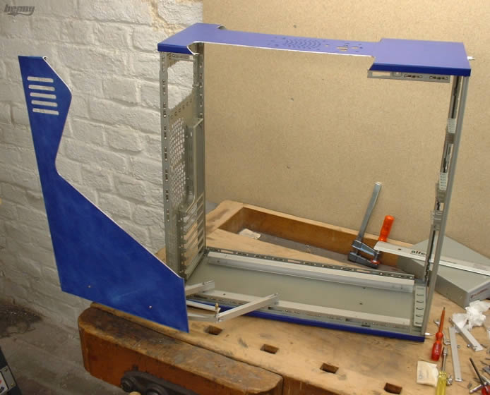 weil ich wollte das die hinteren Seitenteile nach hinten geöffnet werden können, aber das gleichzeitig professioneller wirken sollte wie als wenn ich die nur einfach an's Case drücke und dann ranschiebe (so wie es ja im Originalzustand ist).Ich habe deshalb mal mit ein paar Profilen hier gebastelt, das ganze muß noch ein wenig verfeinert werden (ist auch nur grob zusammengeschraubt).. aber ich denke es ist ansich ok.