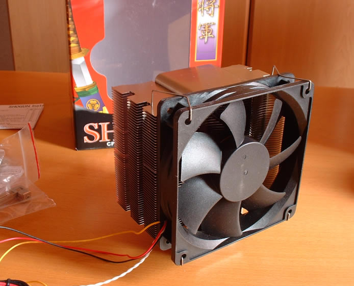 also der kühler is schon geil, nur der lüfter sieht irgendwie kacke aus, ich dind da würd ein lüfter mit alurahmen besser aussehen, die frage ist ob der vom gewicht her daran passt, wegen den klammern...