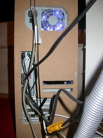 Habe heute die MDF-Rückseite fertiggestellt, das MOBO-Window geschnitten und das 120mm-Lüfterloch rausgedremelt...ach ja und die SCharniere an der Front angeschraubt.und für solche die wie üblich den Spruch haben :pics: