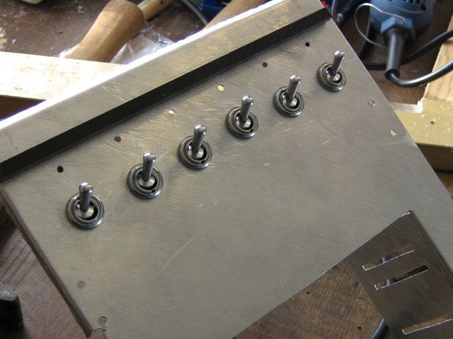 Ich habe heute die löcher in meinem frontpannel ausgeweitet und schalter eingesetzt, und meine Buchstaben für die seitenteilbeleuchtung ausgeschnitten und ans Plexiglas angepasst. das hat meinen Tag für heute voll beansprucht. -