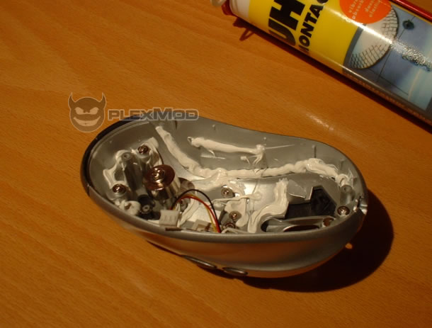 Da nun die Maus aber immer noch so nach dünnwandigen Plastik klang, habe ich die Maus innendrin mit meinem geliebten Montagekleber