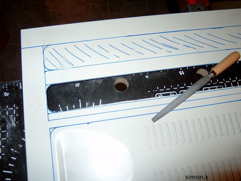 So hab noch etwas weiter gemacht. Der obere Schlitz ist nun auch Fertig. Dazu gibt es noch ein Live-Modding Bild von mir beim Feilen ^^ Und das wars dann auch erstmal für heute.