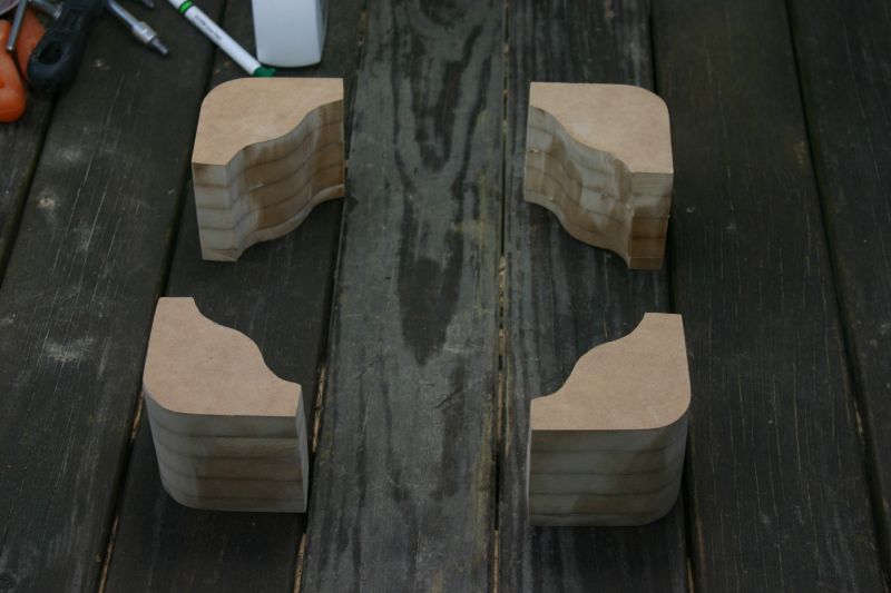 Dier ersten 4 Ecken sind nun fast fertig (morgen muss noch ein biscshen Feinschliff gemacht werden), die restlichen 4 folgen morgen. Dann wird evtl. auch schon ein bisschen gefräst