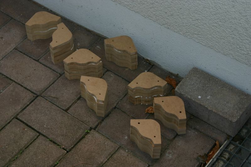 aber wofür brauchst du die brettchen? für den boxteil ,der world in a box?Das werden die Ecken für die beiden Schalen, wo die Hardware untergebracht wird. Wenn die Plättchen morgen ausgesägt werden, kann man sich vllt. mehr drunter vorstellen
