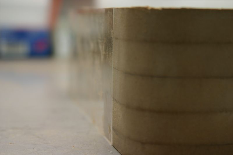 dafür, dass du die MDFteile so extrem gleichmäßig hinbekommen hast. hast du die stapel für stapel alle auf einmal gesägt, oder vllt alle einzeln und dann hinterher bündiggeschliffen?Die Ecken bestehen aus je einer Platte 10mm MDF und 4 16mm MDF Platten.