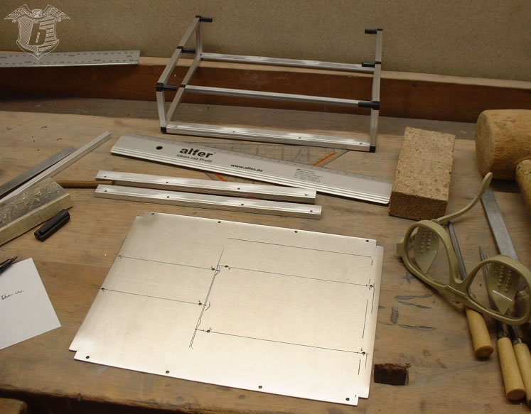 Habe jetzt vorhin erstmal angefangen mir die Öffnungen und Befestigungspunkte von MB, NT usw. auf Papier zu übertragen, die dann hinterher in Alu gearbeitet werden.
