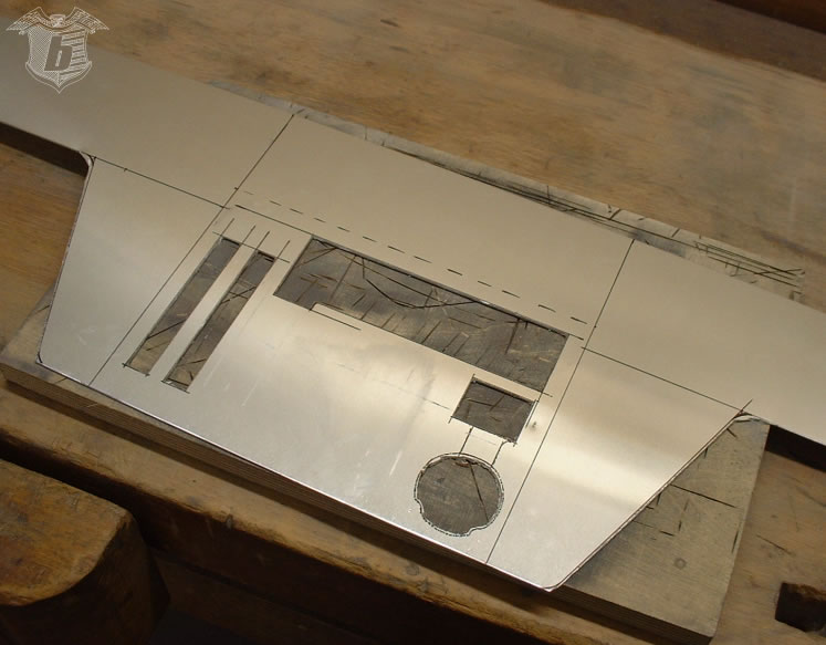 das Rückseitenblech schaut inzwischen wieder bischen anders aus, habe heut früh durch doofheit das von gestern, so verbogen das es mehr Arbeit gewesen wäre das zu richten als ein neues zu machen, ja und so hab ich jetzt ein neues vorhin gearbeitet - und is auch noch net ganz fertig - ..das jetzt dann kleiner ist als das von gestern (also die Seiten sind nicht mit in einem Stück dran sondern die werde ich so dann als kleine Alustücke dran schrauben)... schaut vielleicht hinterher nimmer so hübsch aus wie des von gestern aber zweckmäßig.