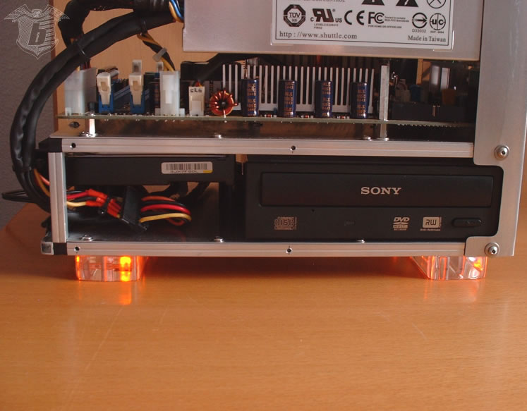 habe mich dazu entschlossen doch kein Alu an den Seiten dranzuschrauben, hauptsächlich der Abwärme wegen, weil momentan ist nur ne 40gb Platte drin, aber angenommen da kommt was größeres rein das wärmer wird, da hab ich dann doch Bedenken und deswegen hab ich des jetzt komplett weggelassen, sieht man zwar bischen die Kabel momentan aber da überleg ich mir noch was anderes ;)