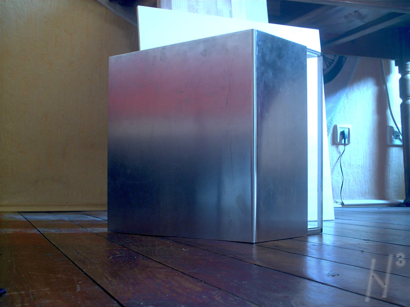 Das "Loch" in der Grundplatte dient zur Versorgung mit Frischluft. Werd da auch noch einen kleinen "Staubfilter" aus Akustikstoff platzieren.An dieser Stelle möchte ich mich bei Lumitronix für das zu Verfügung stellen der LEDs für den N³ und ein weiteres Projekt bedanken.