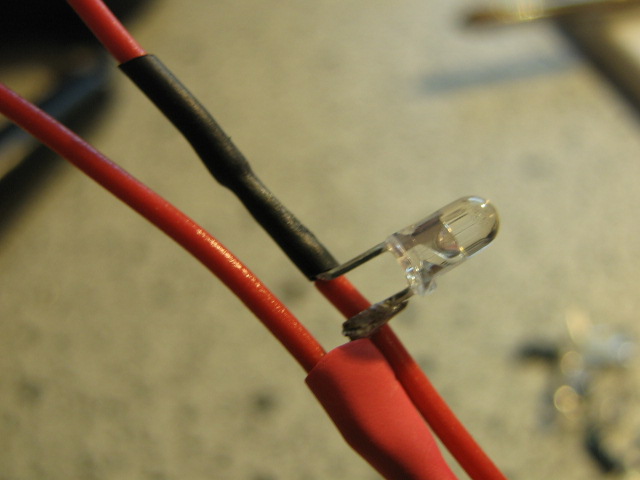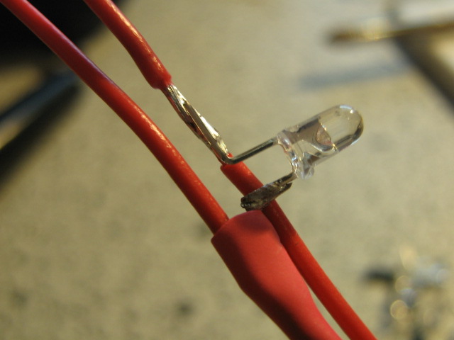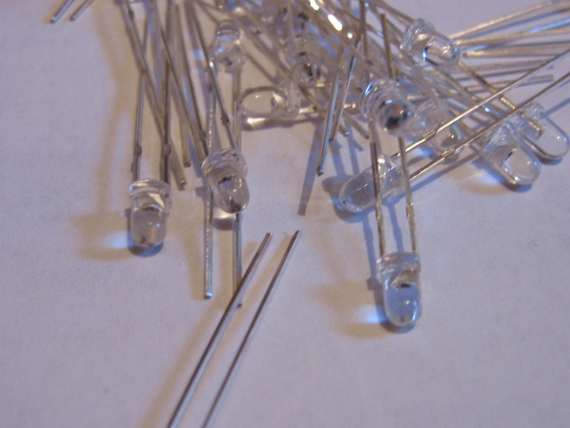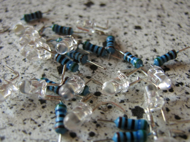 insgesammt wurden 48 LEDs mit Vorwiderständen verlötet und zu 4 "Lichterketten" verbunden á 12 LEDs