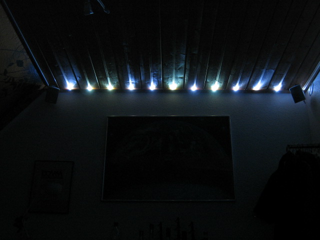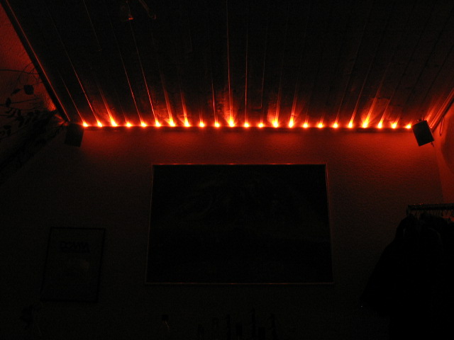 Unten seht Ihr ein Foto meiner Holzvertäfelung. In jede dieser Vertiefungen zwischen den Brettern wird eine Weiße und eine Orange LED kommen, versteckt unter der Zierleiste.soweit die Idee. Das ganze soll noch verschiedene Schalt- und Dimmmöglichkeiten haben, aber dazu dann später mehr.