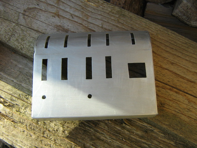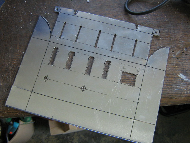 in die schlitze in der Rundung soll Plexiglas mit Kontrollleuchten und die in die übrigen Öffnungen kommen Schalter und Hauptschalter.