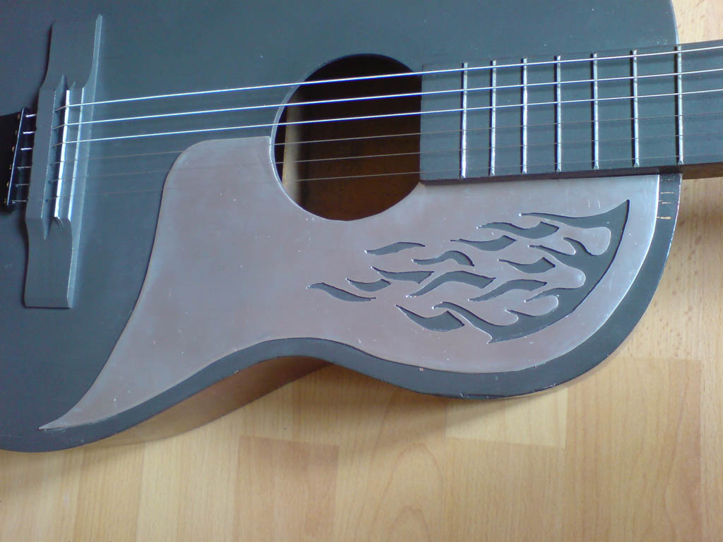 - Ein Pickguard (Schlagbrett) aus 1mm Alu entstand.