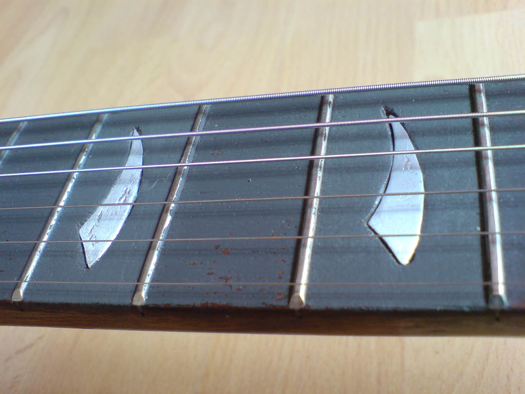 - Der Hals Hat 2 Inlay's aus Alu bekommen. (aus 1m Entfernung kann man die Kratzer und Spalte nicht mehr erkennen)