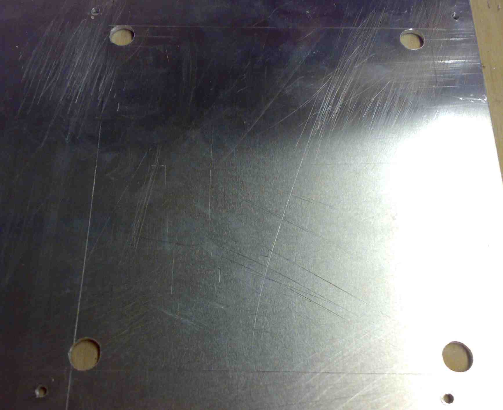 Heute habe ich mir eine 3mm Alu Platte geschnappt... habe die auf dem Gehäuse boden geschraubt und angezeichnet wo was hinkommt.