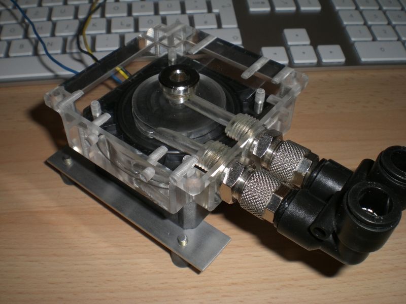 Mit der neuen Konstruktion ist die Oberseite auch vom Fenster aus zu sehen ist. Außerdem musste die ganze Pumpe noch um 15mm weiter nach unten gesetzt werden, da andernfalls der Radiator nicht mehr gepasst hätte.