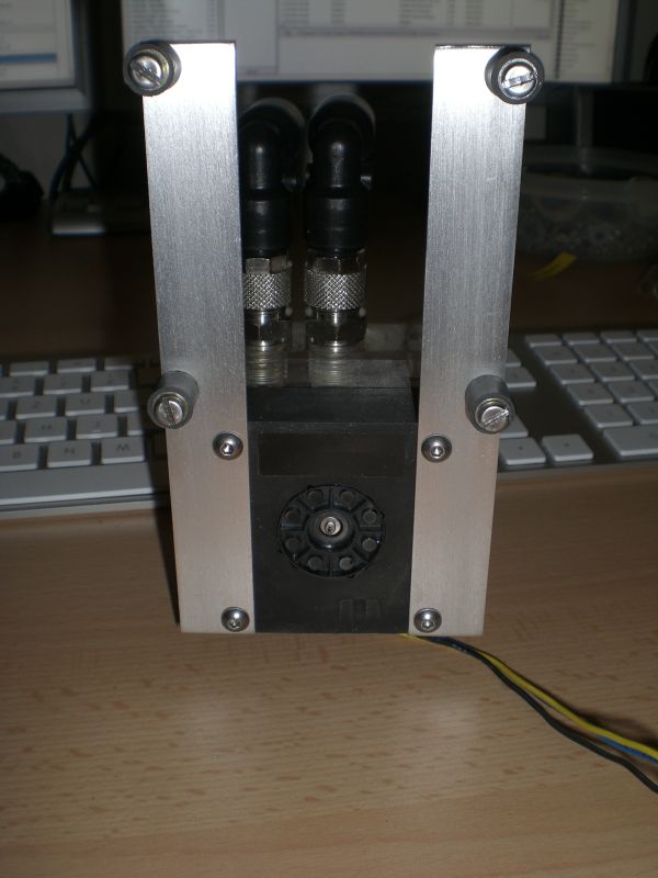 Da ich bei der ersten Version der Halterung sowieso die falschen Gewinde geschnitten hatte, habe ich das ganze nochmal komplett überdacht und bearbeitet. Vorher wäre es so gewesen, dass der Pumpendeckel nach hinten gerichtet wäre und man eigentlich nur die Unterseite der Pumpe gesehen hätte.
