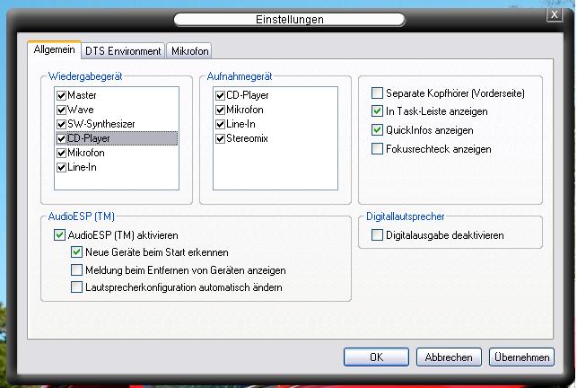 am Verstärker zu tun haben. Denn der Anfang eines Geräusches wird etwas unterdrückt (wenn er vorher kein Signal erhalten hat).- DVDs und Winamp laufen jetzt einwandfrei.