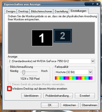 Es handelt sich hierbei um eine ASUS Nvdia7950 X2.Ich kann keinen 2 Monitor aktivieren.