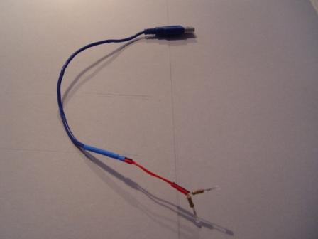 Hierzu habe ich ein altes USB-Kabel mit zwei blauen 3mm LEDs inkl. Vorwiderständen verlötet und mit Schrumpfschlauch sauber isoliert.