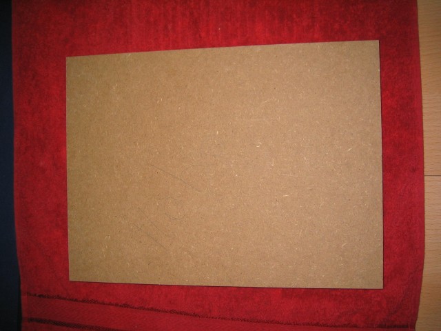 2.) ausgangslage, die mdf platte (hier wird das mobo befestigt)