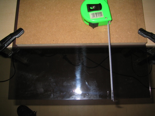 2.) nachdem ich das plexi in der breite geschnitten/gehobelt hatte, passt es auch... nun wird es in der länge "be"schnitten! danach gehts ans biegen!